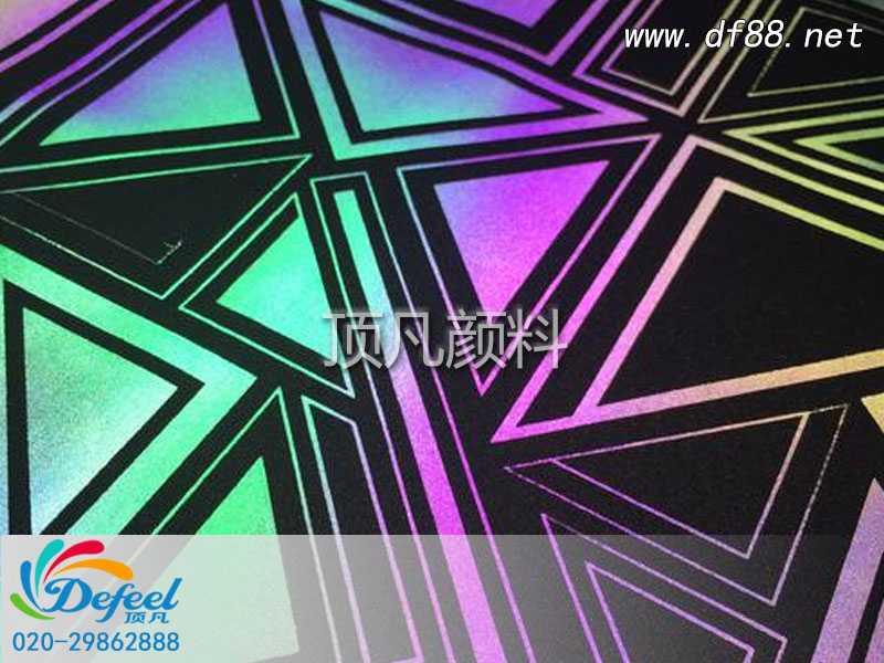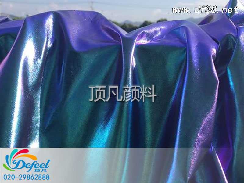 這里所說的變色龍粉是制作服裝變色龍印花的原材料,它的原理是吸收特定波長的光源,藉由該光源之能量而產生顏色變化(變為紫色、紅色、黃色、天空蘭色),當特定波長的光源不在時,即回復原來的顏色。它并不是真正意義上的顏色發生變化,只是通過折射不同的顏色在不同的角度看上去顏色不同而已。