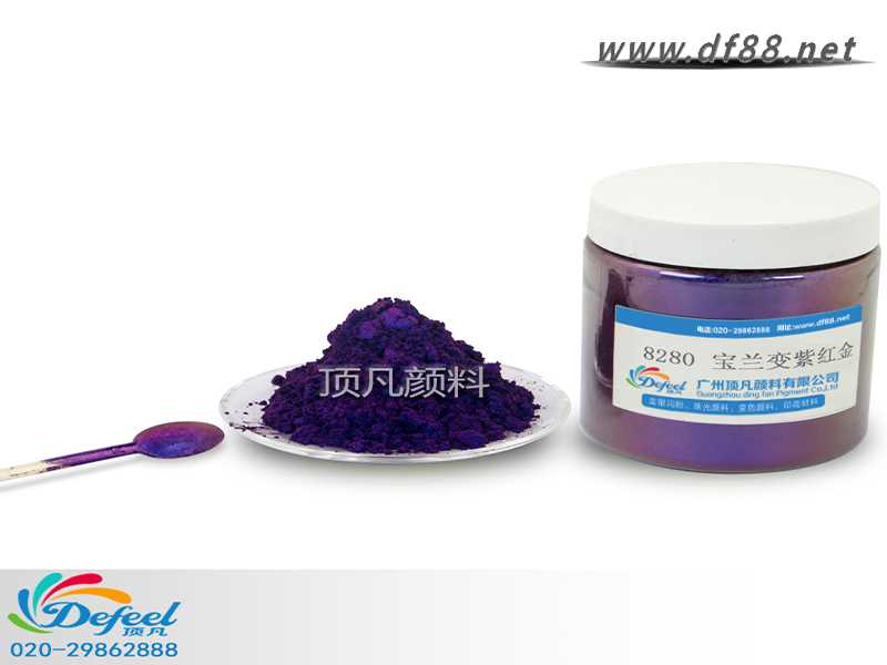 其實變色龍粉就是珠光粉的一種,頂凡變色龍顏料是一種多層片狀顔料由鋁、氟化鎂和鉻三種顔料組成,把它添加入油漆、涂料、塑料、紡織品和包裝品中之后,你從不同的角度看,它們就能變幻出不同的顔色。